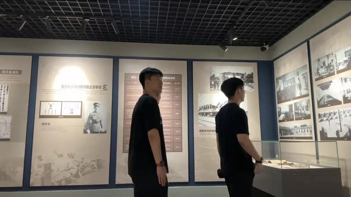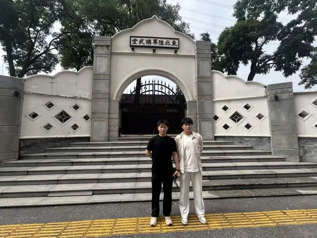 第三站,实践团同学走进东北陆军讲武堂旧址陈列馆。刚踏上石板路,大家便被这座如沉默军事史诗般的建筑吸引,轻声讨论民国建筑风格。青砖灰瓦的营房、拱券门窗、坡形屋顶,线条冷峻刚硬。几位同学触摸斑驳墙壁,指尖拂过印记,似能感受时光痕迹。空旷的操场仿佛有号令回响,同学们自发列队,模仿当年学员站姿。“原来军人的挺拔是这样练出来的。” 一位同学挺直腰杆感慨地说。这座民国将星摇篮,砖缝浸透着铁血硝烟气息,风骨穿越时空,见证烽火岁月,英雄气概未散。参观结束,实践团在旧址前合影,同学们表示,此次实践直观感受了近代军事教育历程,被先辈爱国情怀和奋斗精神感染,未来会以更昂扬的姿态面对学习生活。