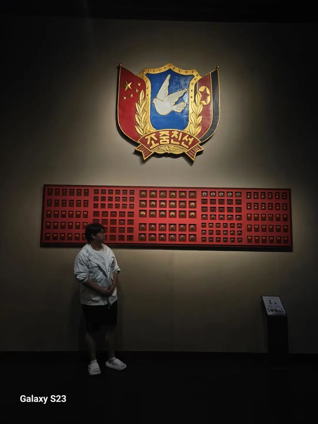 第二站,实践团同学们怀着崇敬之情走进抗美援朝纪念馆。这座血火丰碑让喧闹的队伍瞬间安静,大家放慢脚步,肃穆迈入展厅。展厅内,褪色军装、斑驳家书与冰冷钢枪静静陈列,重现长津湖寒冰与上甘岭焦土。英雄墙上年轻的面庞如星河,冲锋号声在光影中回荡。同学们驻足辨认时,一位同学感慨:“这战士才19岁,和我们年纪相仿。”这里封存着 “最可爱的人” 堵枪眼的信仰、冰雕守山河的铁骨。每件遗物都在诉说:尊严是打出来的,和平是拼回来的,民族精神的烽火台灼烧着不朽英雄气。同学们表示,此次实践让他们深切体会到先烈的英勇与爱国情怀,未来会继续传承弘扬这种精神,努力学习,为祖国强大贡献力量。