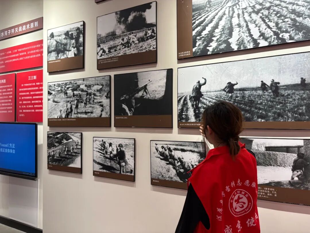 第三站实践团来到法库县秀水河子歼灭战纪念馆。在秀水河子战役纪念馆,团队成员仿佛穿越时空,回到了那个战火纷飞的年代。在参观途中成员们了解到秀水河子歼灭战的战术原则是“一点两面、三三制”,它是由东北民主联军独创的战术,这种战法也在朝鲜战场上战胜了以美军为首的“联合国军”,并被写入了美国西点军校的教材!这场战役不仅是东北解放战争的重要转折点,更是革命先烈们用生命和鲜血铸就的不朽丰碑。在这里,成员们接受了一次深刻的爱国主义教育和革命传统教育,更加坚定了为实现中华民族伟大复兴而努力奋斗的决心。