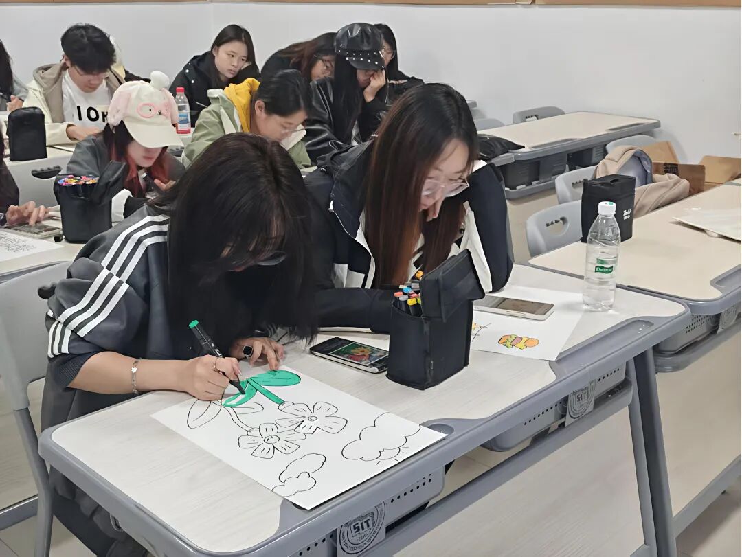 活动流程的精心设计,给同学们带来一场沉浸式的心灵疗愈,在开始的3-5分钟的听音乐放松中,同学们暂时卸下了学业与生活的重担,让思绪回归平静。随后进入纸质绘画环节,同学们把积压的焦虑画成流动的线条,把心底的喜悦涂成明亮的色块,让情绪随笔尖自然流露。