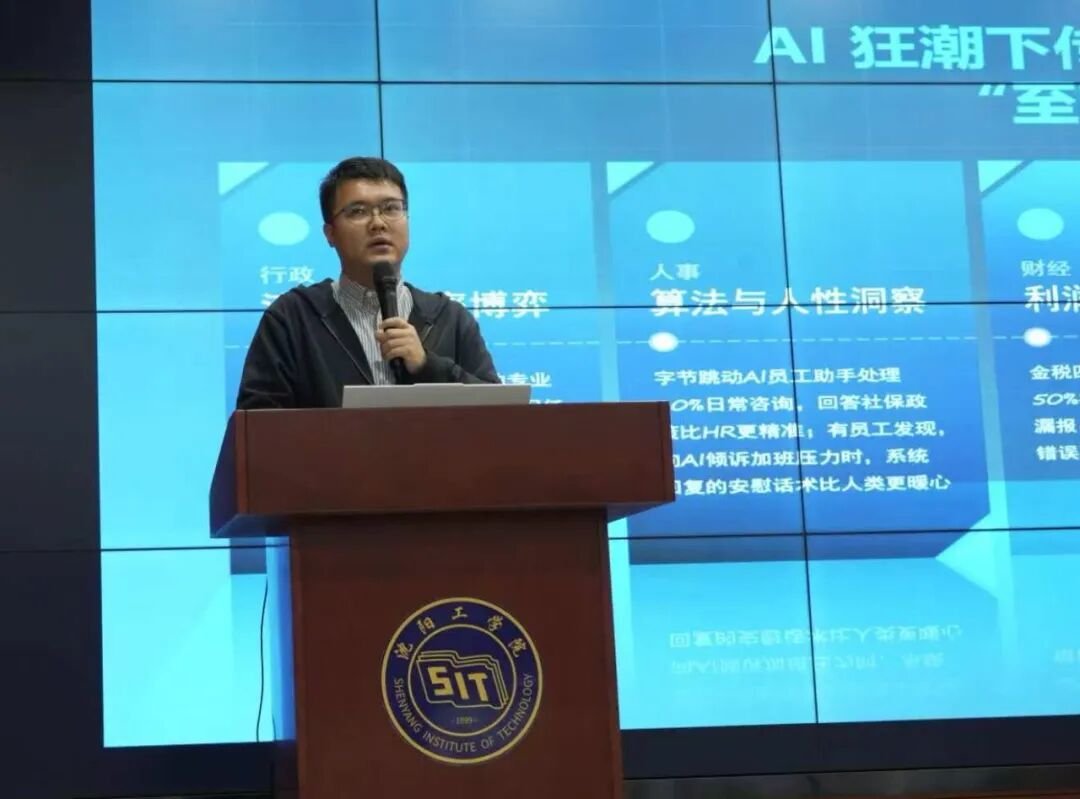 为全面提升学生骨干的数字素养与职能管理能力,推动AI技术与学生工作深度融合,11月7日下午,校团委特邀美的集团-美云智数科技有限公司解决方案顾问谢经洋,在国际教育学院报告厅开展了一场以“AI时代传统职业重塑之道——以职能管理岗位为例”为主题的专题培训。校团委和学生会骨干成员参与学习。