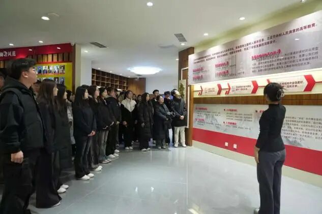 随后,队伍前往校史馆。张晋老师介绍到此馆均由我校师生亲自承担完成,接着结合学校办学以来的各个历史瞬间,为同学们讲述了学校的发展历程,让大家对我们的学校有了更深刻的了解与认识,加深了“追求卓越,互助利他”的校训精神。