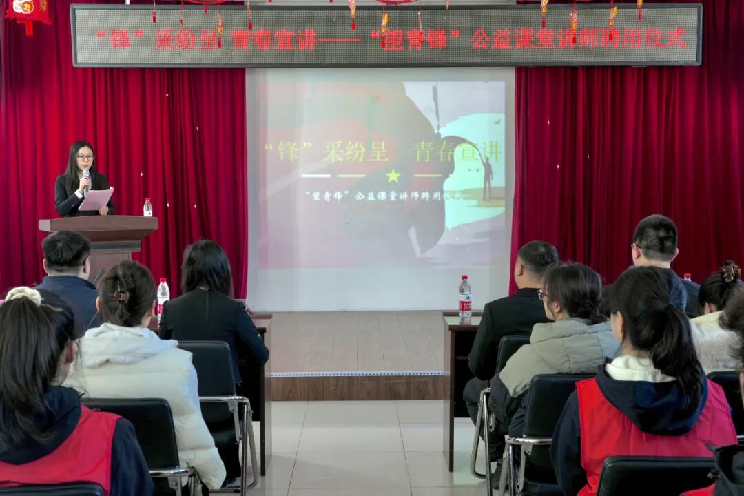 为深入弘扬新时代雷锋精神,扎实推进雷锋精神践行月系列活动,深化校地协同育人机制,充分发挥高校青年在基层理论宣讲与志愿服务中的先锋作用,3月19日下午,沈阳工学院团委受邀参加由共青团望花区委员会主办的“望青锋”公益课堂讲师聘用仪式。校团委副书记李冬明、大学生理论宣讲团指导教师张瀚中及20余名学生代表出席活动。